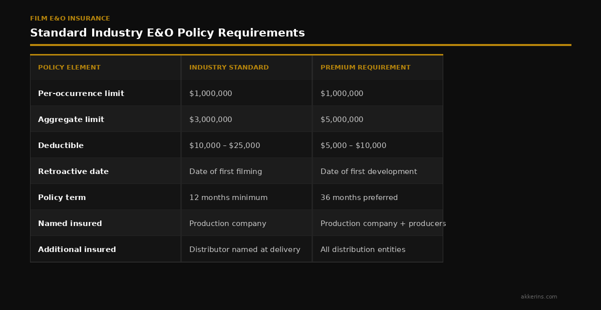 Every major distributor and streaming platform has specific E&O requirements that must be satisfied before they will accept delivery of your film. Understanding these requirements before you go into post-production — not after you have a distribution offer on the table — can save you months of delay and significant expense.